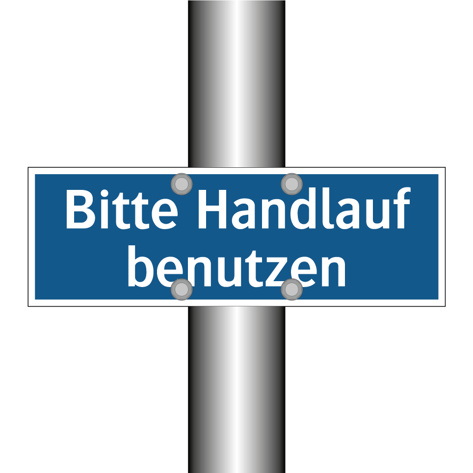 Gebotsschild mit dem Text Bitte Handlauf benutzen