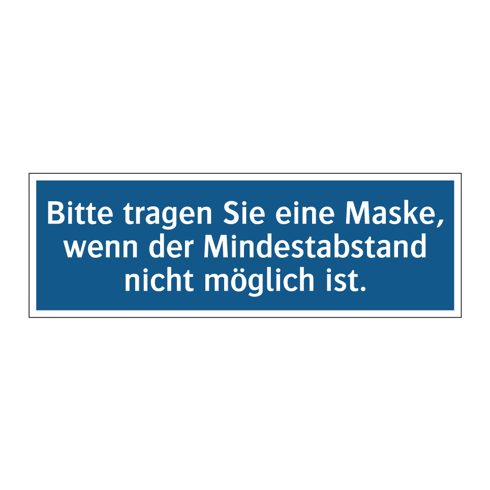 Gebotsschild mit dem Text Bitte tragen Sie eine Maske, wenn der Mindestabstand nicht möglich ist.