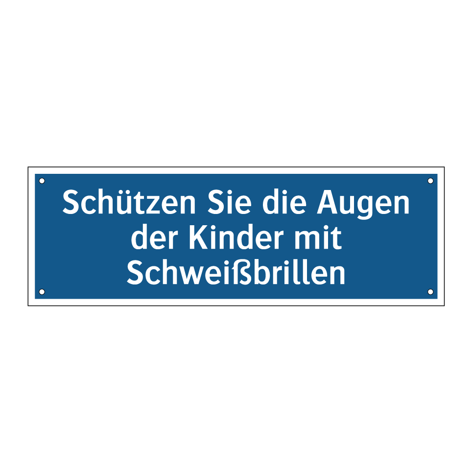 Gebotsschild mit dem Text Schützen Sie die Augen der Kinder mit Schweißbrillen
