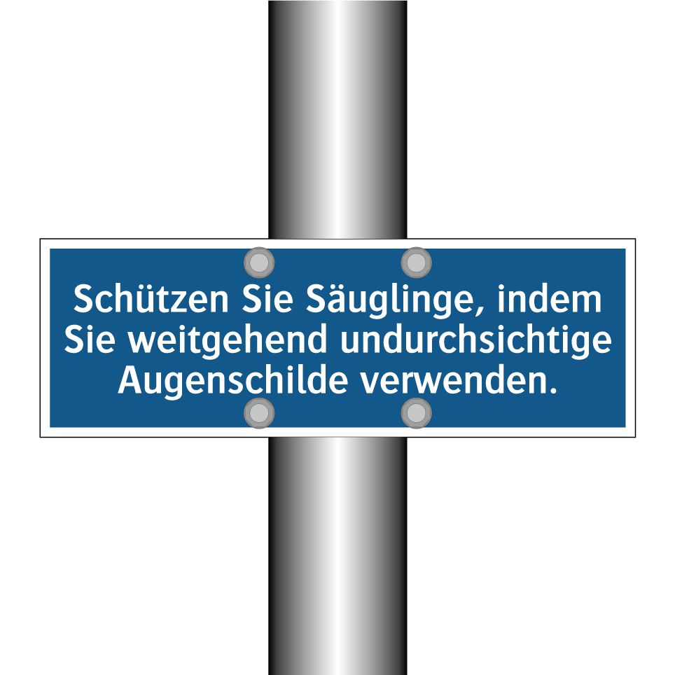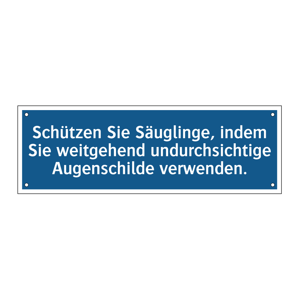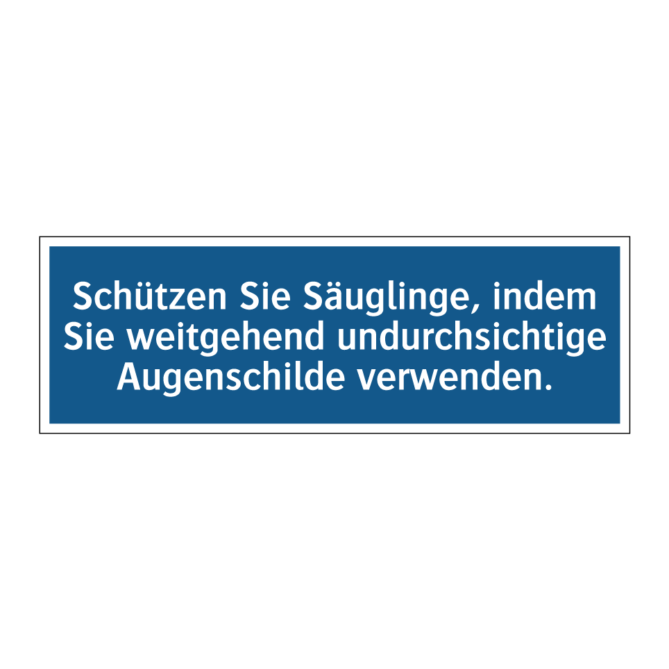 Gebotsschild mit dem Text Schützen Sie Säuglinge, indem Sie weitgehend undurchsichtige Augenschilde verwenden.