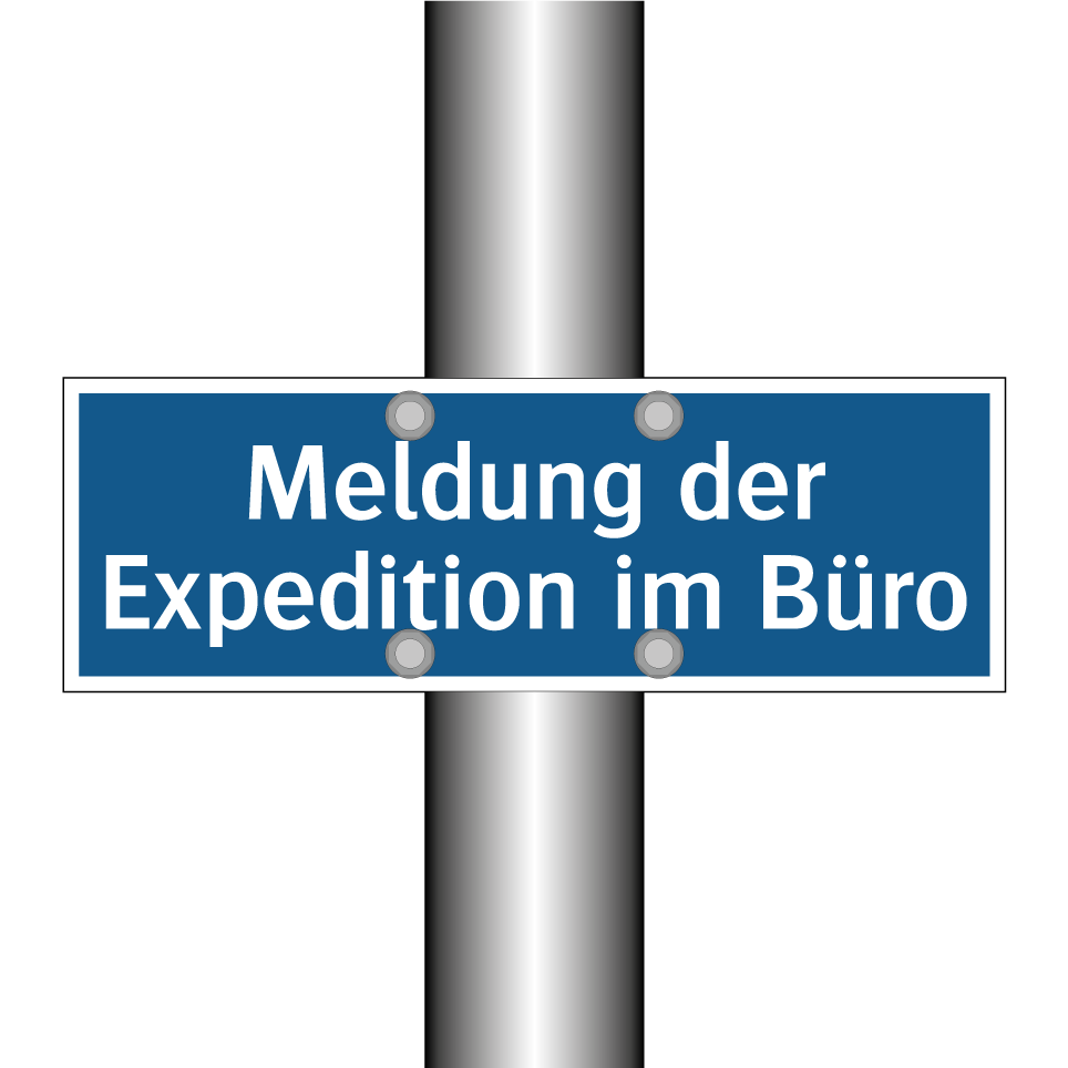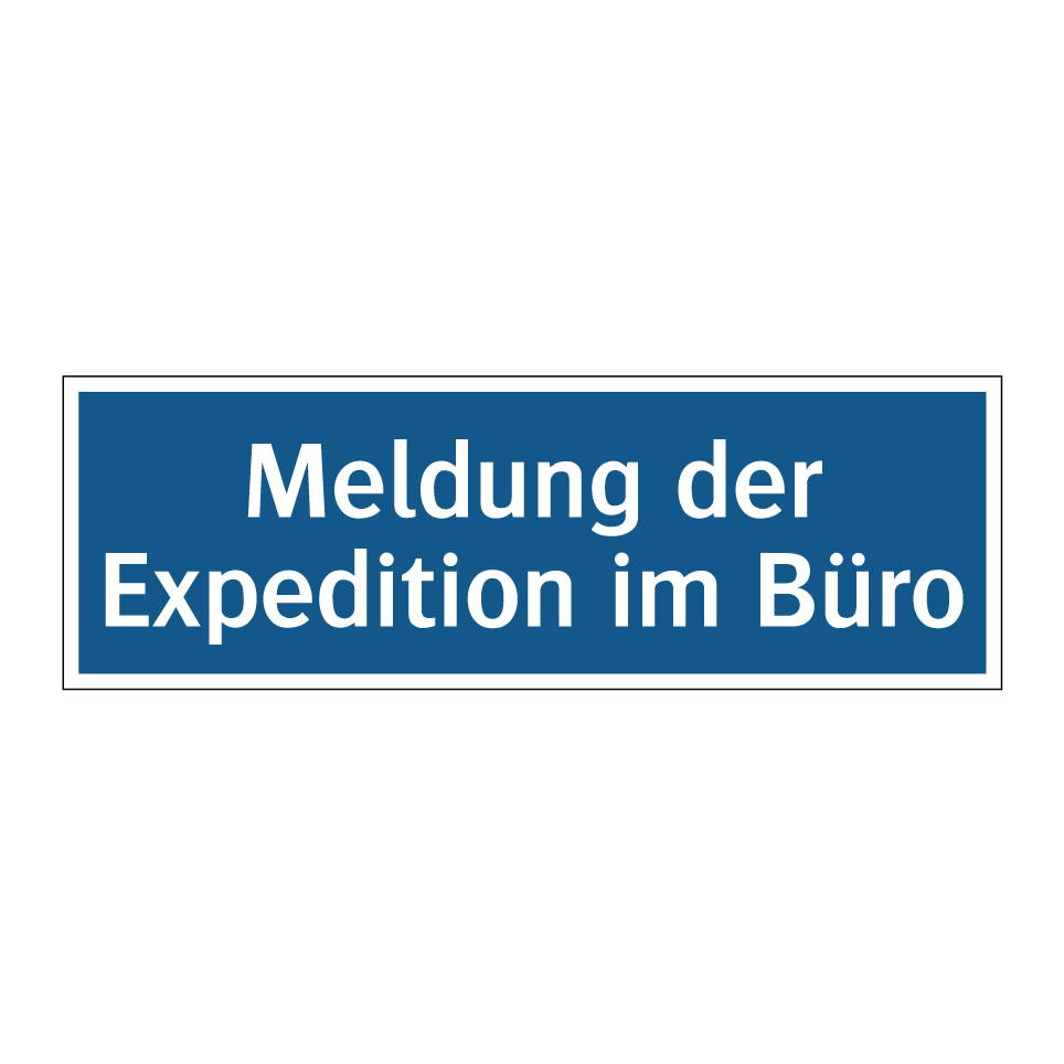 Gebotsschild mit dem Text Meldung der Expedition im Büro
