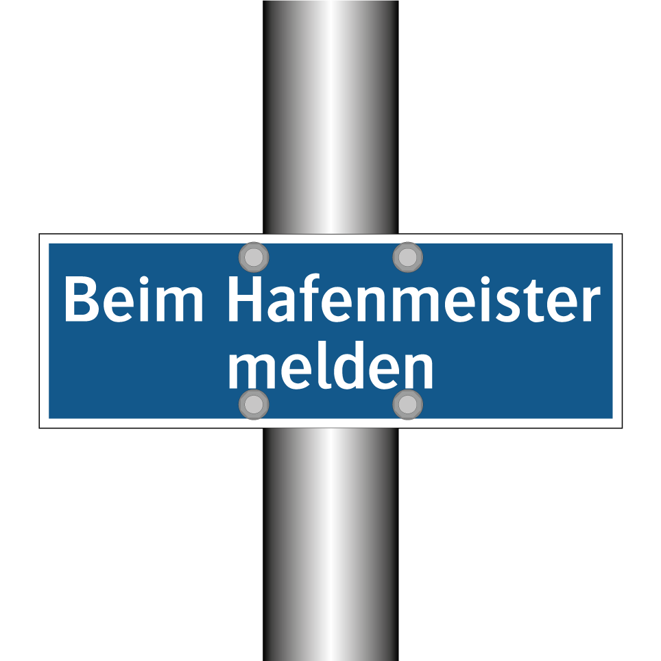 Gebotsschild mit dem Text Beim Hafenmeister melden