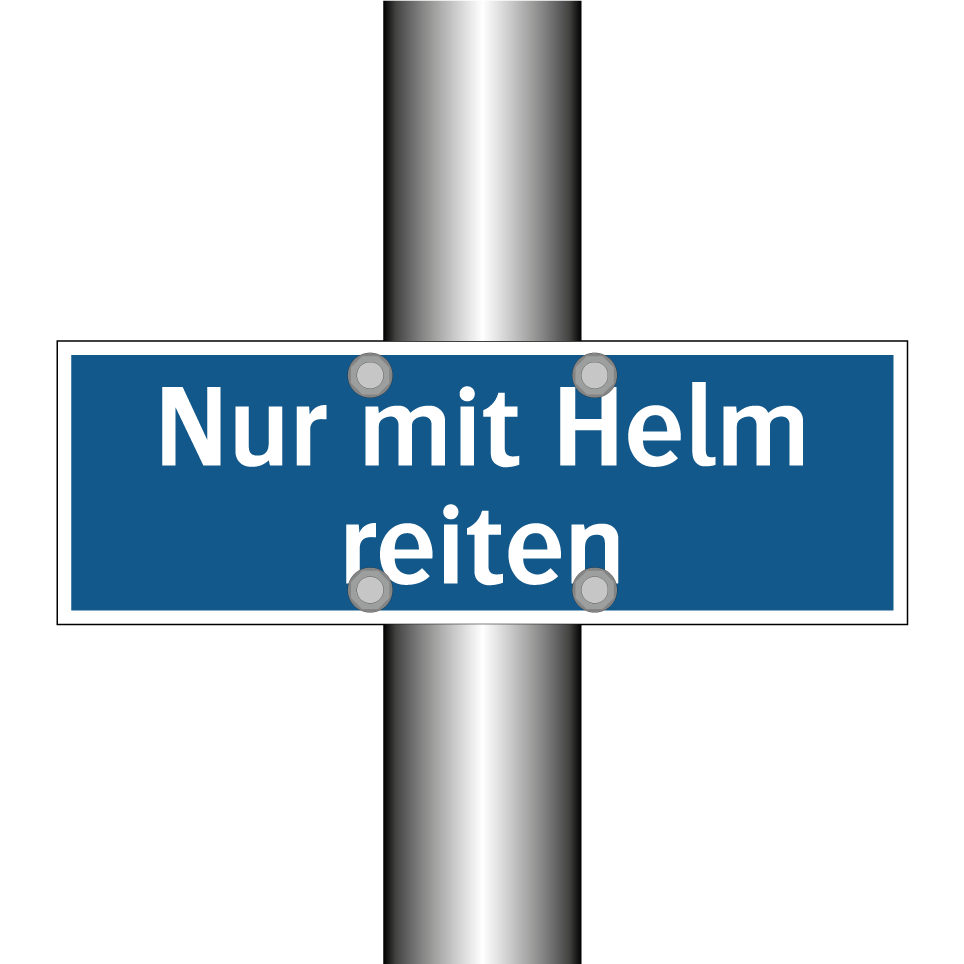 Gebotsschild mit dem Text Nur mit Helm reiten