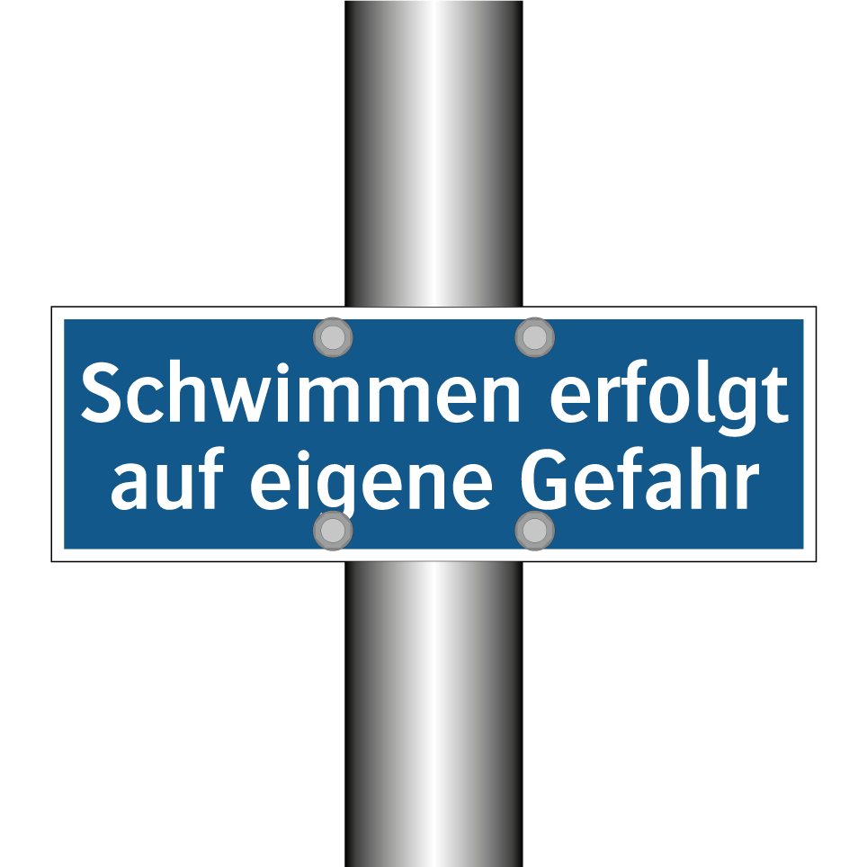 Gebotsschild mit dem Text Schwimmen erfolgt auf eigene Gefahr
