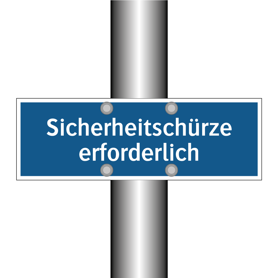 Gebotsschild mit dem Text Sicherheitschürze erforderlich