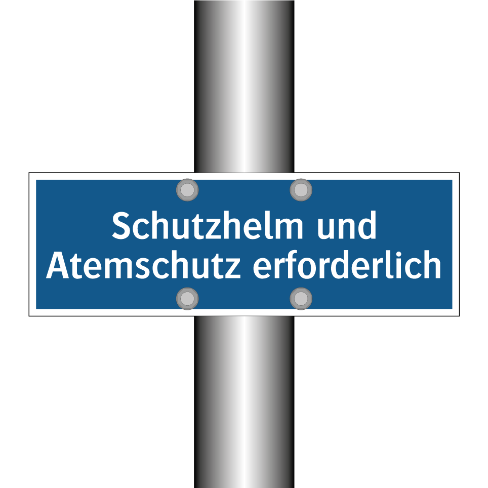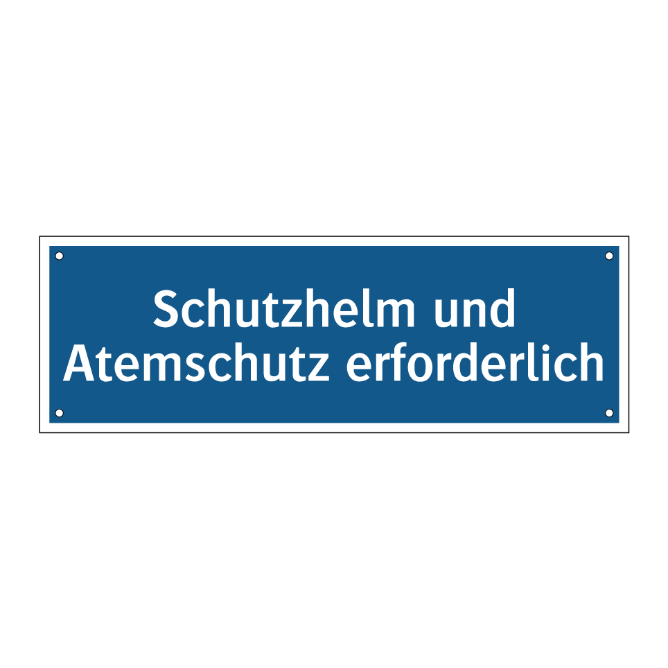 Gebotsschild mit dem Text Schutzhelm und Atemschutz erforderlich