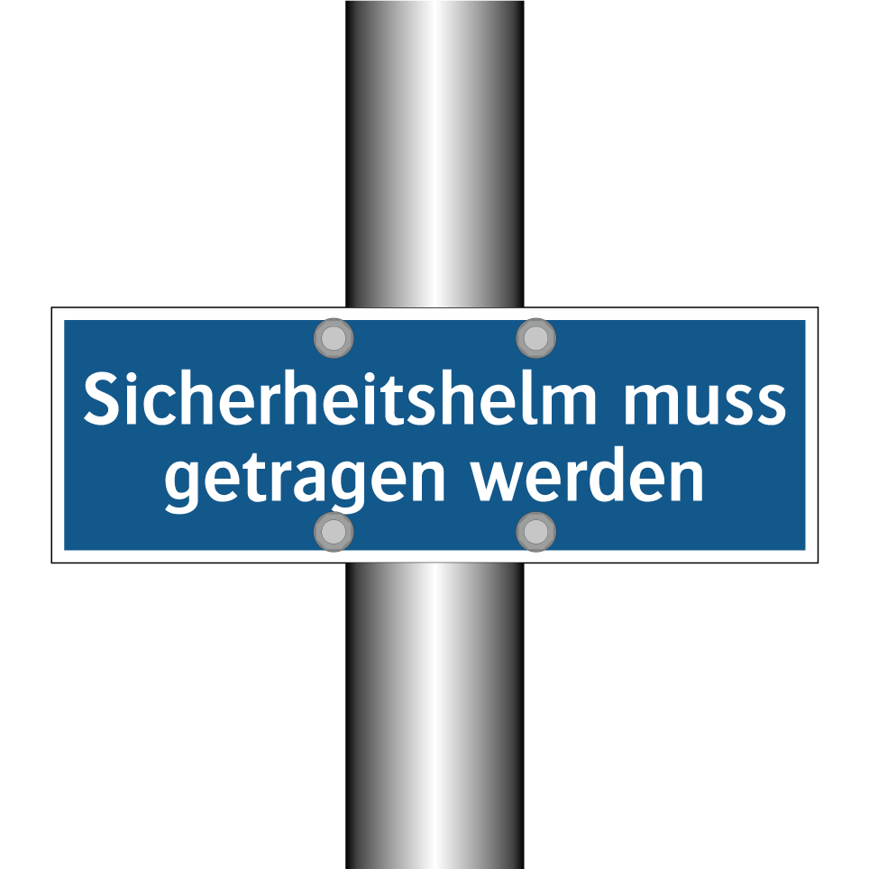 Gebotsschild mit dem Text Sicherheitshelm muss getragen werden