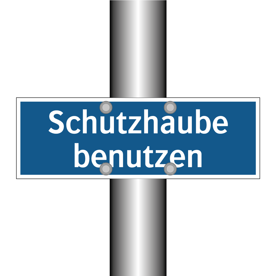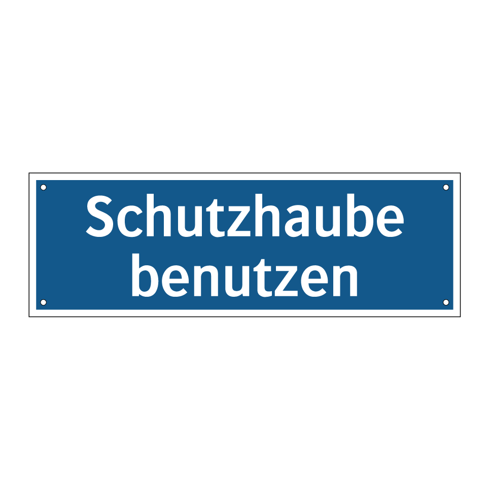 Gebotsschild mit dem Text Schutzhaube benutzen