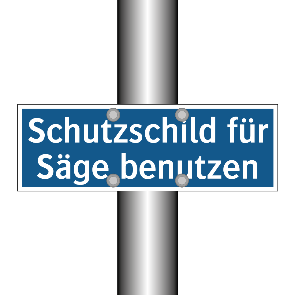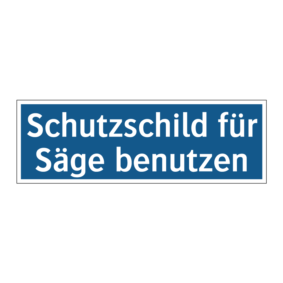 Gebotsschild mit dem Text Schutzschild für Säge benutzen