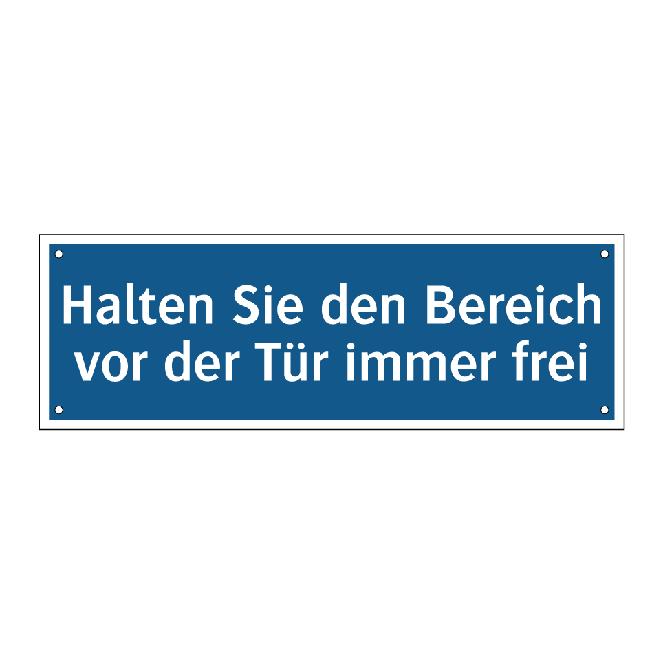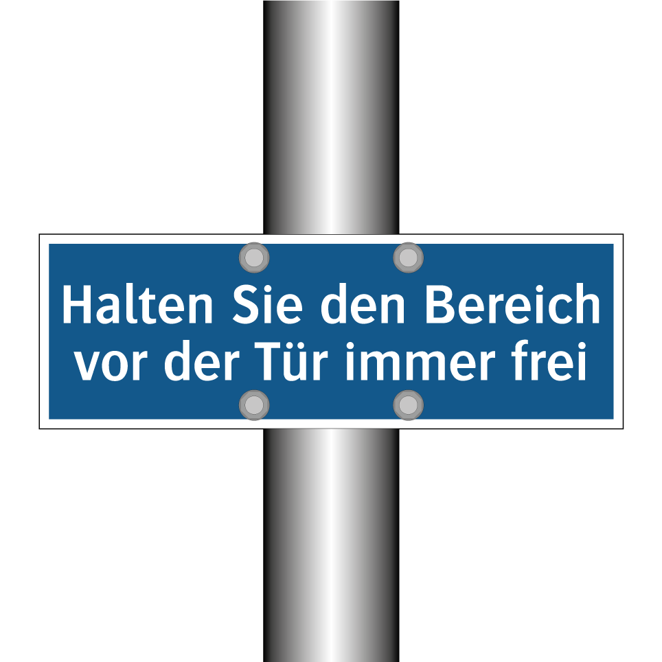 Gebotsschild mit dem Text Halten Sie den Bereich vor der Tür immer frei