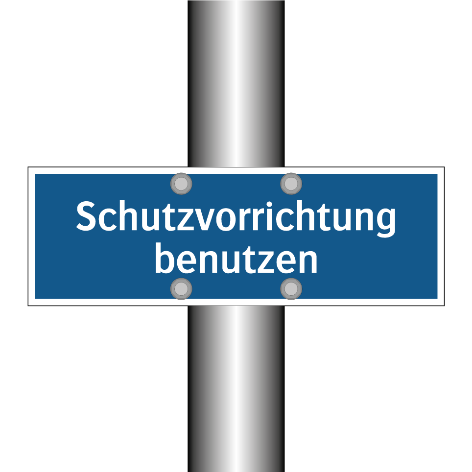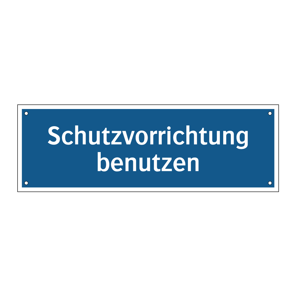 Gebotsschild mit dem Text Schutzvorrichtung benutzen