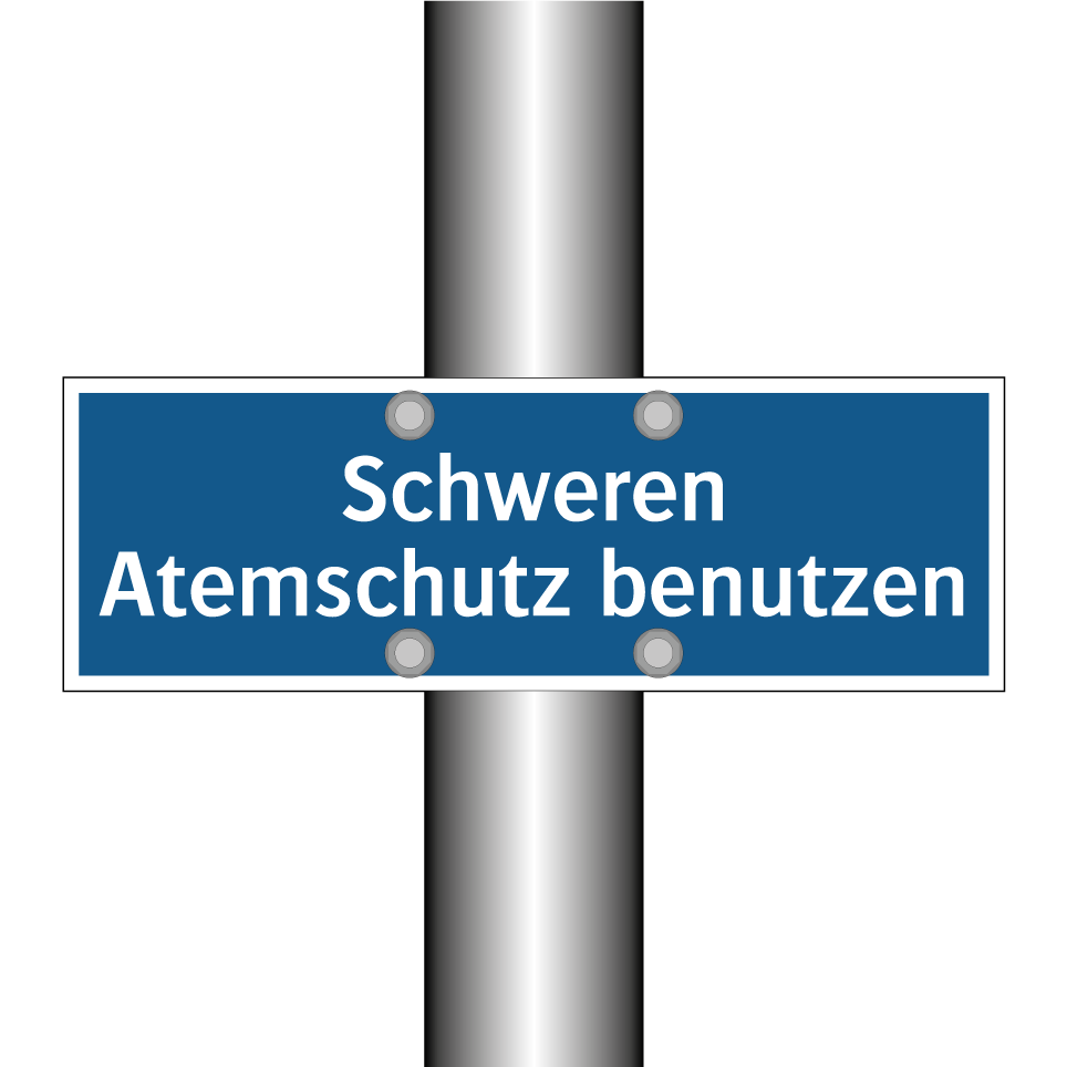 Gebotsschild mit dem Text Schweren Atemschutz benutzen