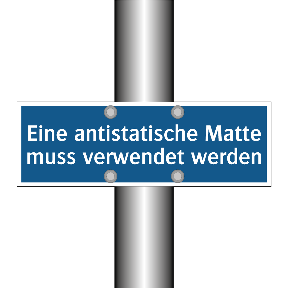 Gebotsschild mit dem Text Eine antistatische Matte muss verwendet werden