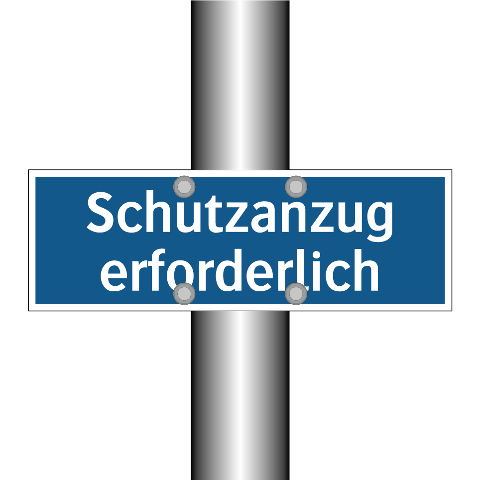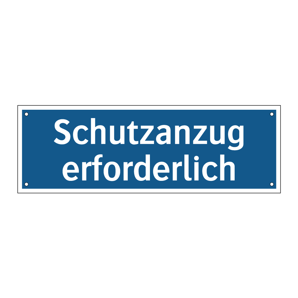 Gebotsschild mit dem Text Schutzanzug erforderlich