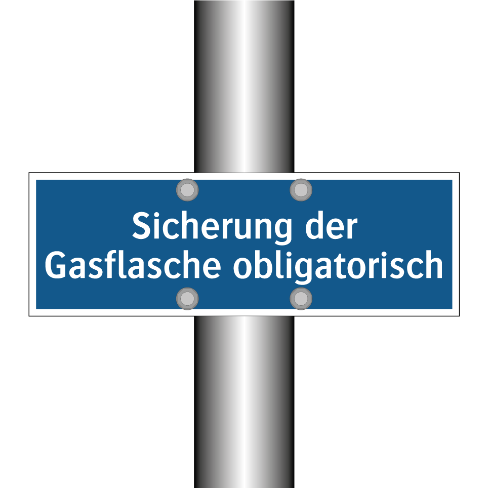 Gebotsschild mit dem Text Sicherung der Gasflasche obligatorisch