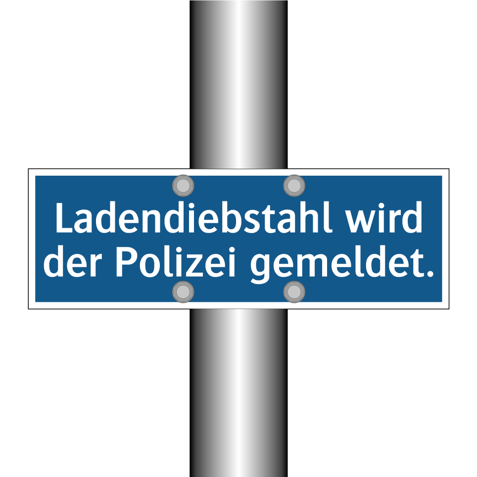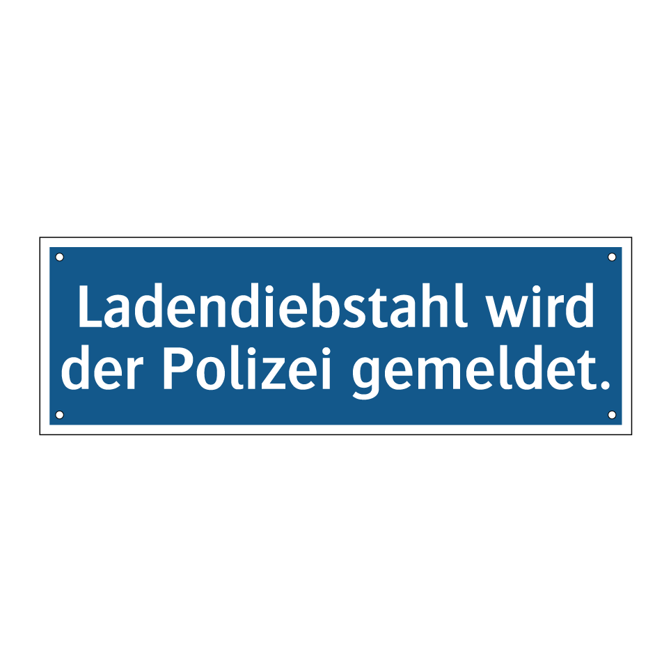 Diese Gebotsschild mit blauem Hintergrund und weißer Schrift ist ideal für den Einsatz in Einzelhandelsgeschäften, um Diebstahl zu verhindern. Sie dient als klare Warnung für potenzielle Ladendiebe und signalisiert, dass Diebstahl konsequent der Polizei gemeldet wird. Platzieren Sie diese Gebotsschilder an gut sichtbaren Stellen wie Eingängen, Kassenbereichen oder Umkleidekabinen, um die Sicherheit in Ihrem Geschäft zu erhöhen. Diese prägnante Botschaft trägt dazu bei, ein sicheres und vertrauenswürdiges Umfeld für Kunden und Mitarbeiter zu schaffen. Nutzen Sie diese effektive Maßnahme, um Diebstahl zu reduzieren und die Einhaltung der Geschäftsregeln zu fördern.