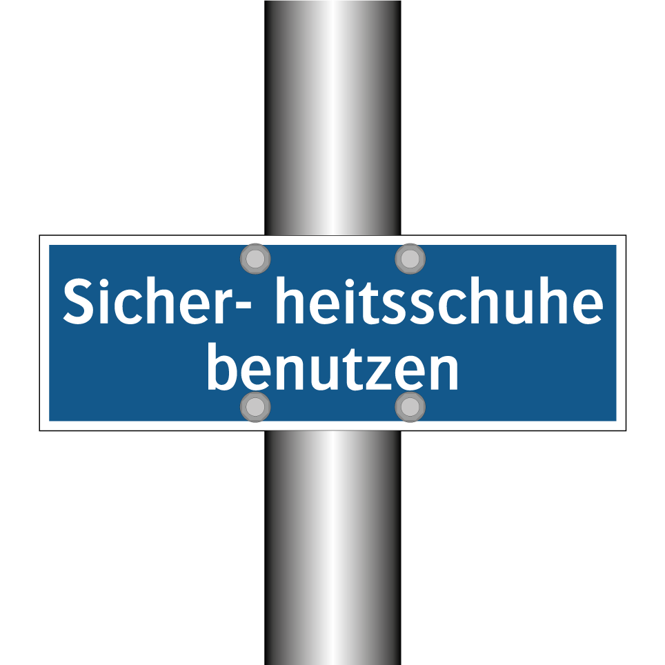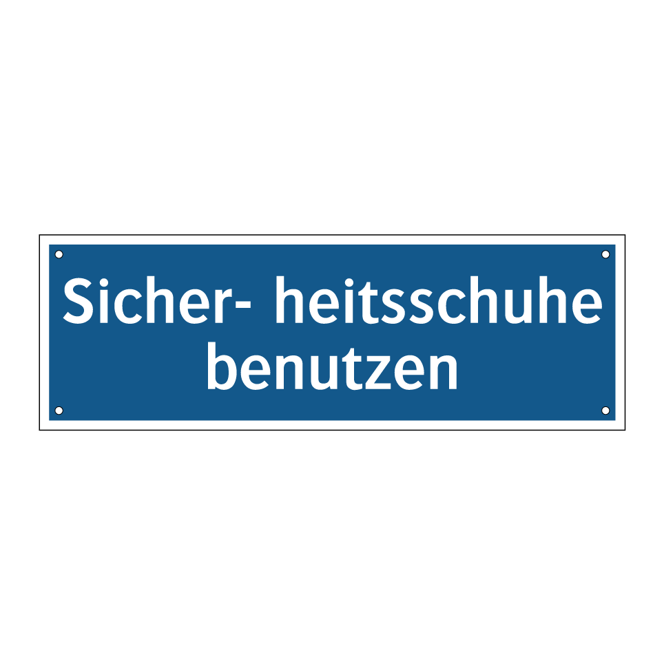 Gebotsschild mit dem Text Sicher- heitsschuhe benutzen
