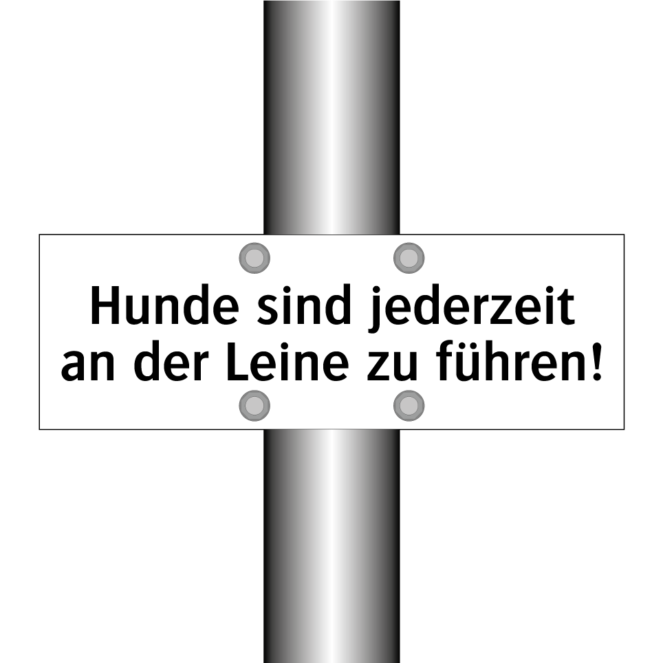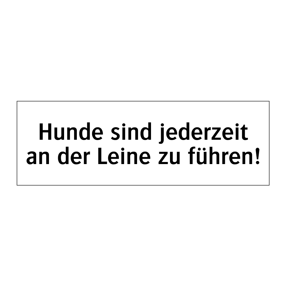 Verbotsschild mit dem Text Hunde sind jederzeit an der Leine zu führen!