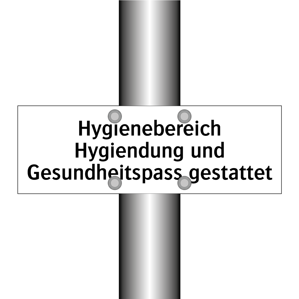Verbotsschild mit dem Text Hygienebereich Hygiendung und Gesundheitspass gestattet