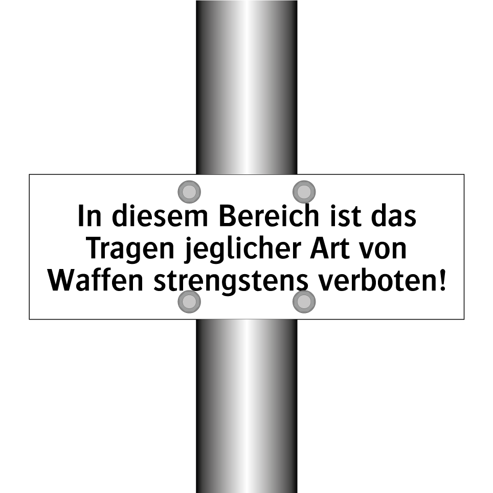 Verbotsschild mit dem Text In diesem Bereich ist das Tragen jeglicher Art von Waffen strengstens verboten!