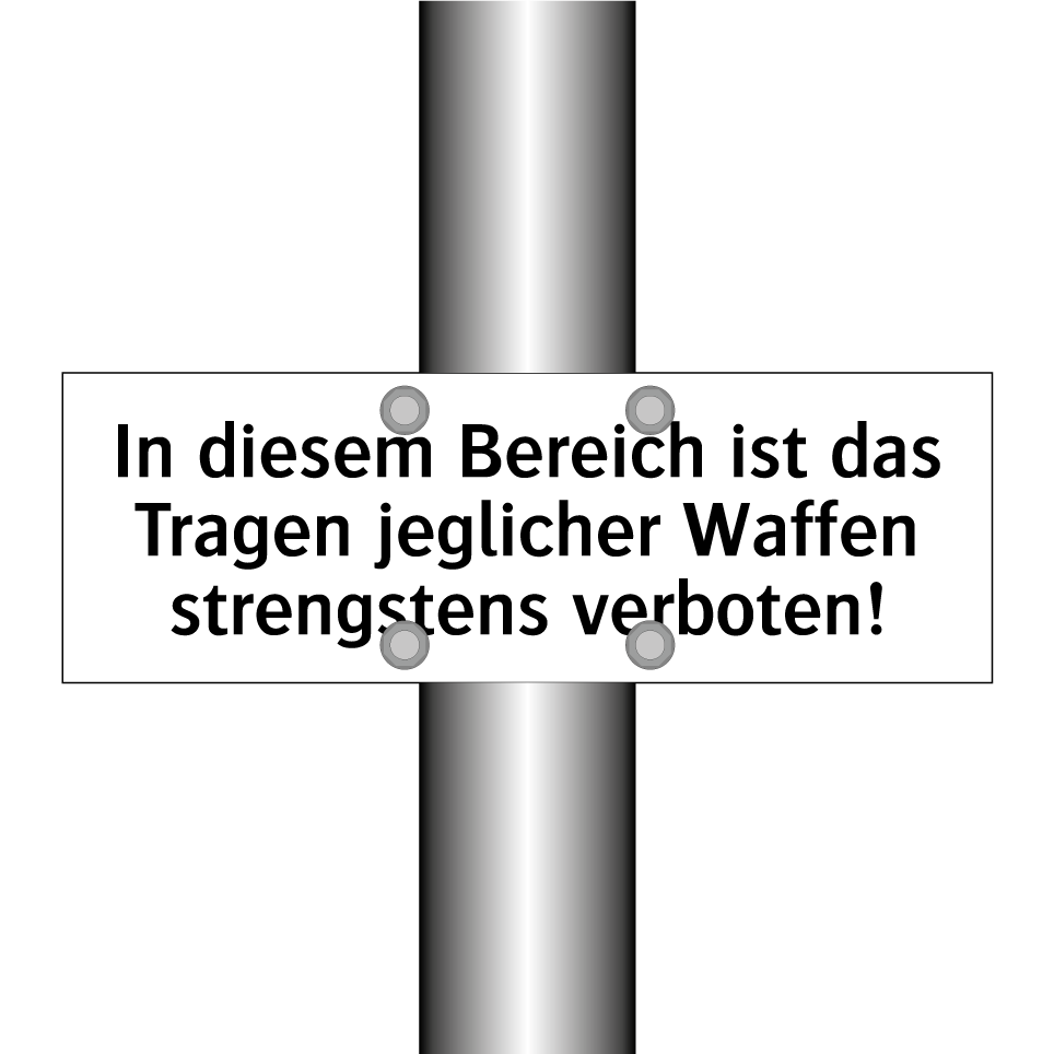 Verbotsschild mit dem Text In diesem Bereich ist das Tragen jeglicher Waffen strengstens verboten!
