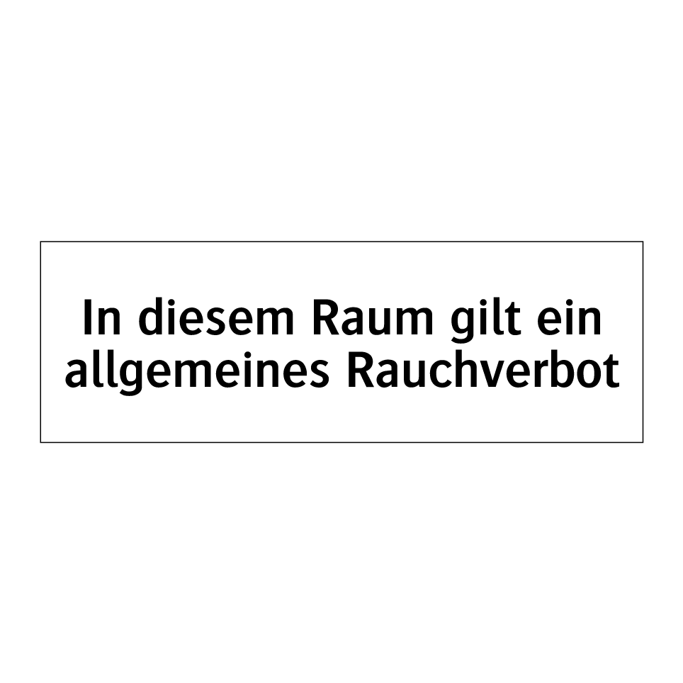 Verbotsschild mit dem Text In diesem Raum gilt ein allgemeines Rauchverbot