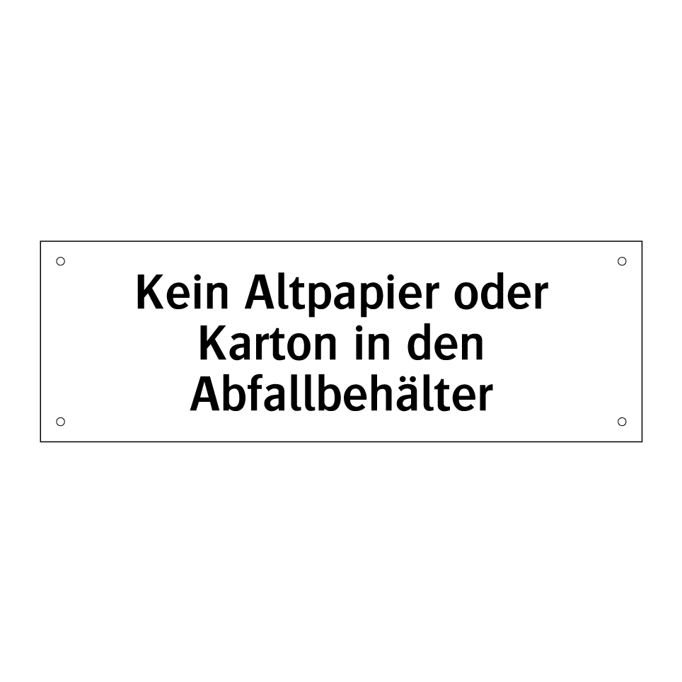 Verbotsschild mit dem Text Kein Altpapier oder Karton in den Abfallbehälter