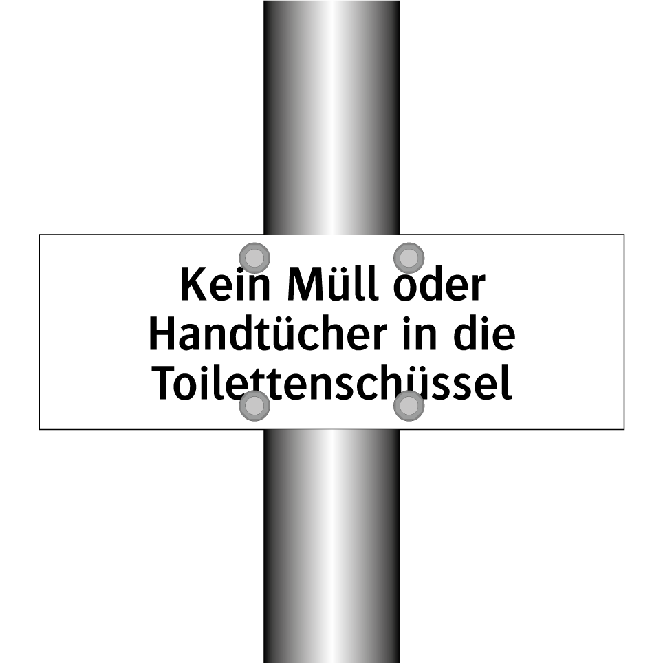 Verbotsschild mit dem Text Kein Müll oder Handtücher in die Toilettenschüssel