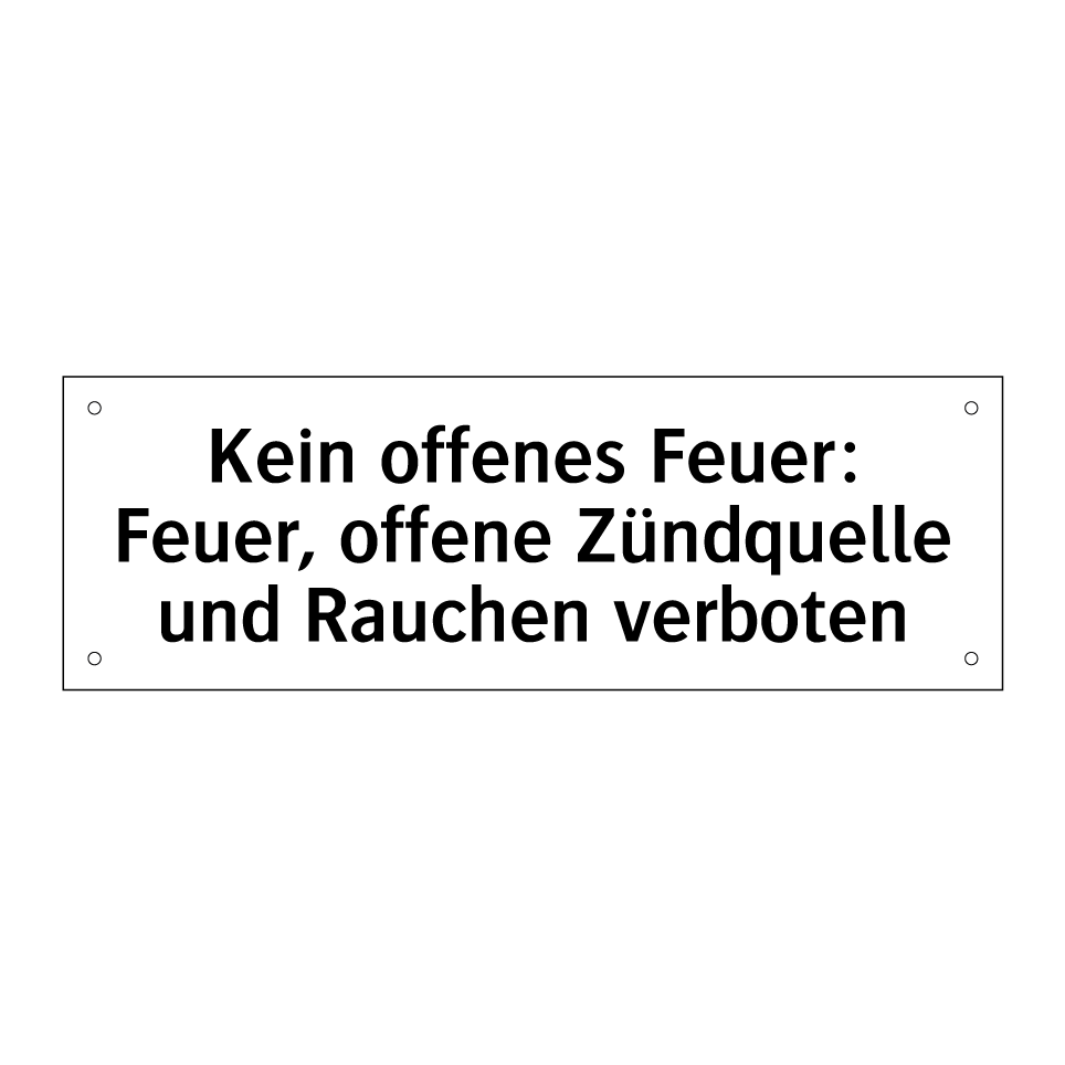 Verbotsschild mit dem Text Kein offenes Feuer: Feuer, offene Zündquelle und Rauchen verboten