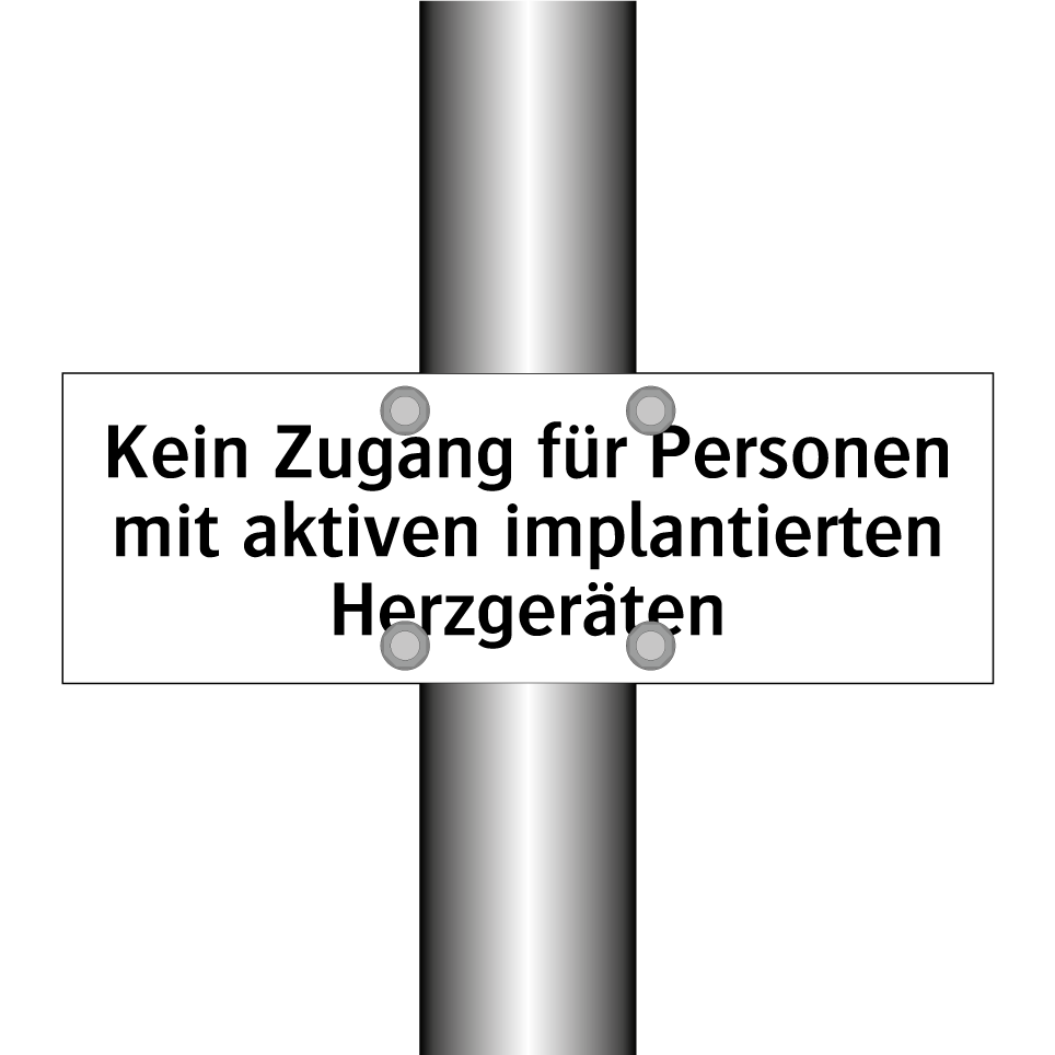 Verbotsschild mit dem Text Kein Zugang für Personen mit aktiven implantierten Herzgeräten