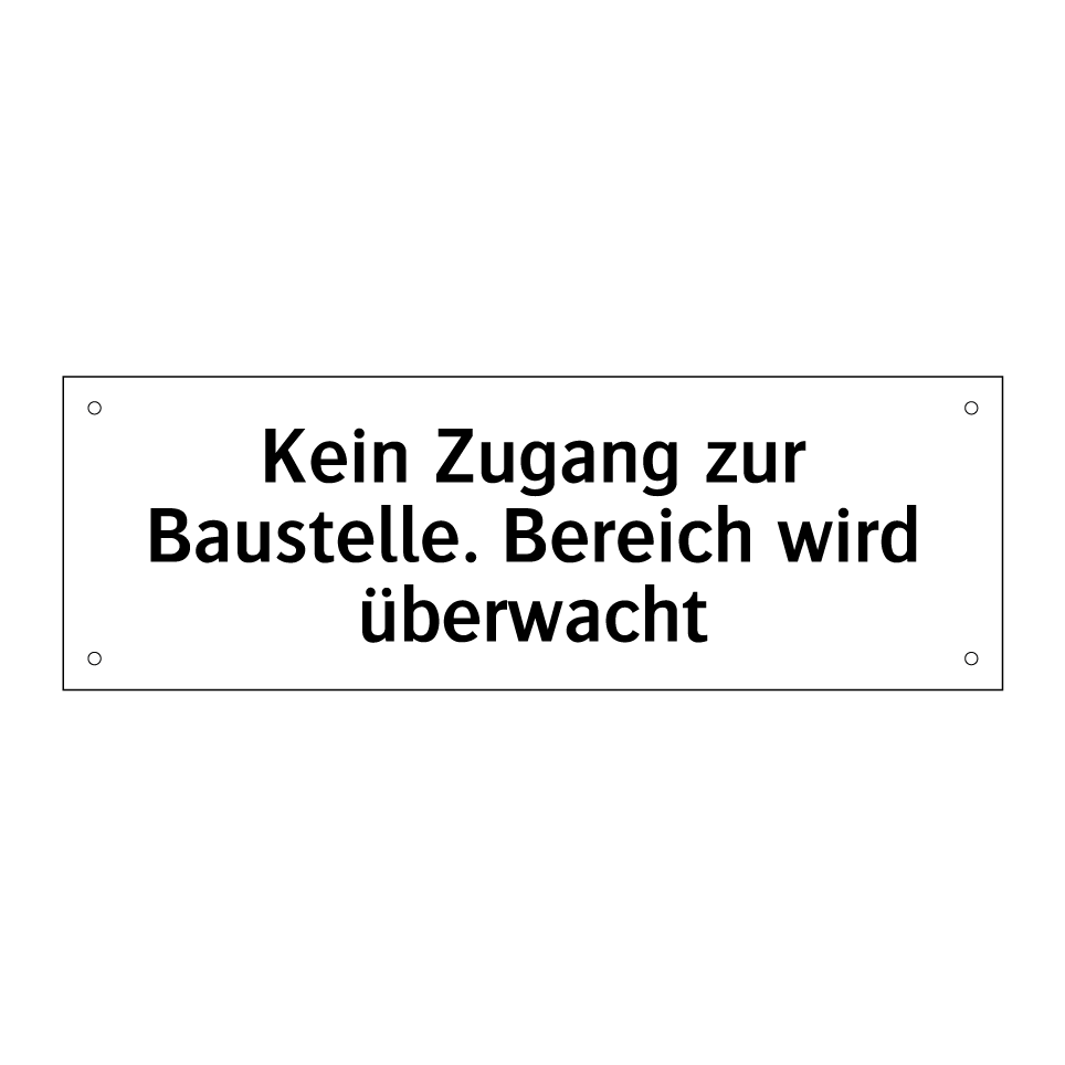 Verbotsschild mit dem Text Kein Zugang zur Baustelle. Bereich wird überwacht