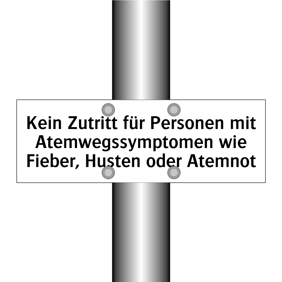 Verbotsschild mit dem Text Kein Zutritt für Personen mit Atemwegssymptomen wie Fieber, Husten oder Atemnot