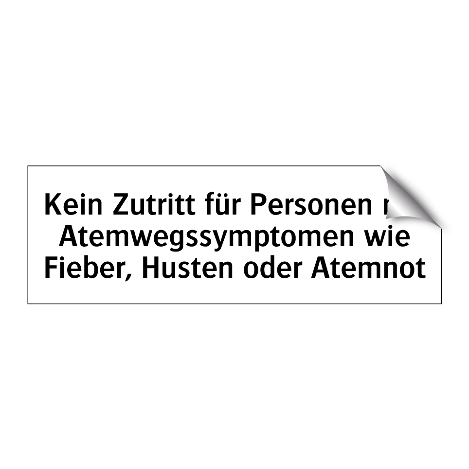 Diese Verbotsschild ist ein unverzichtbares Element für Orte, an denen der Schutz der Gesundheit oberste Priorität hat. Sie eignet sich ideal für den Einsatz in Krankenhäusern, Arztpraxen, Pflegeheimen und anderen medizinischen Einrichtungen. Auch in Büros, Schulen oder öffentlichen Gebäuden kann sie effektiv eingesetzt werden, um die Verbreitung von Atemwegserkrankungen zu verhindern. Die klare Botschaft dieser Verbotsschild sorgt dafür, dass Personen mit Symptomen wie Fieber, Husten oder Atemnot den Zugang verweigert wird. Platzieren Sie die Verbotsschild gut sichtbar am Eingang, um die Sicherheit und das Wohlbefinden aller Anwesenden zu gewährleisten.