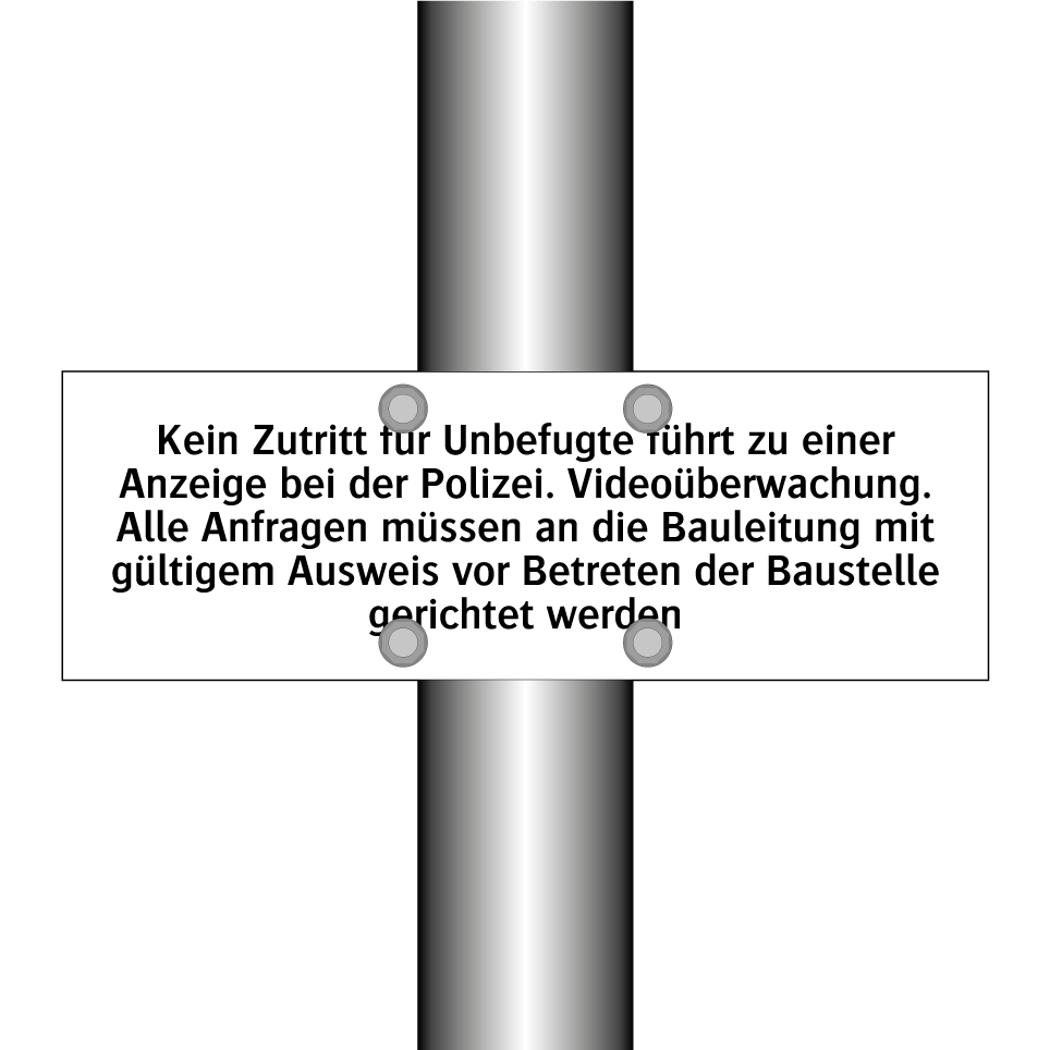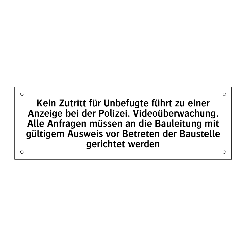 Diese Verbotsschild ist ideal für den Einsatz auf Baustellen, um unbefugten Zutritt zu verhindern und die Sicherheit zu gewährleisten. Sie dient als klare Warnung, dass der Zugang nur mit gültiger Genehmigung und Ausweis gestattet ist. Die Überwachung durch Videoüberwachung wird ebenfalls deutlich kommuniziert, was potenzielle Eindringlinge abschreckt. Diese Schild kann an Eingängen, Zäunen oder anderen strategischen Punkten platziert werden, um sicherzustellen, dass nur autorisierte Personen Zugang erhalten. Durch die deutliche Botschaft wird das Risiko von Sicherheitsverletzungen minimiert und die Einhaltung der Vorschriften gefördert.