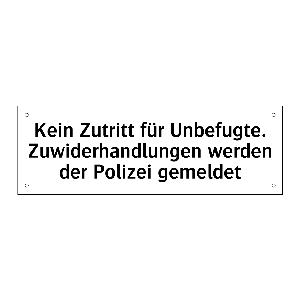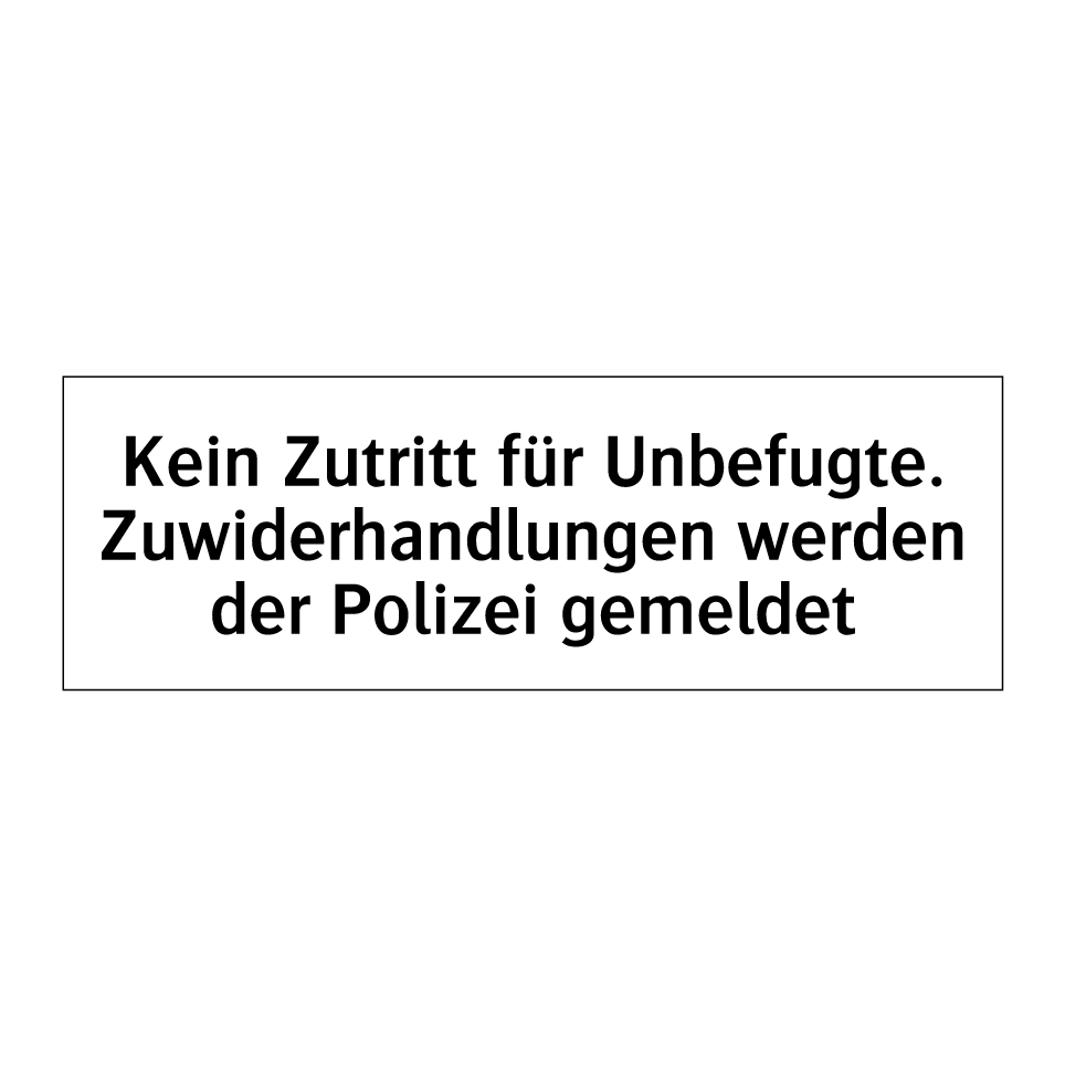 Verbotsschild mit dem Text Kein Zutritt für Unbefugte. Zuwiderhandlungen werden der Polizei gemeldet