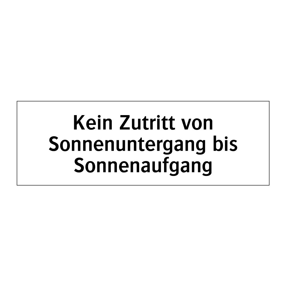 Verbotsschild mit dem Text Kein Zutritt von Sonnenuntergang bis Sonnenaufgang