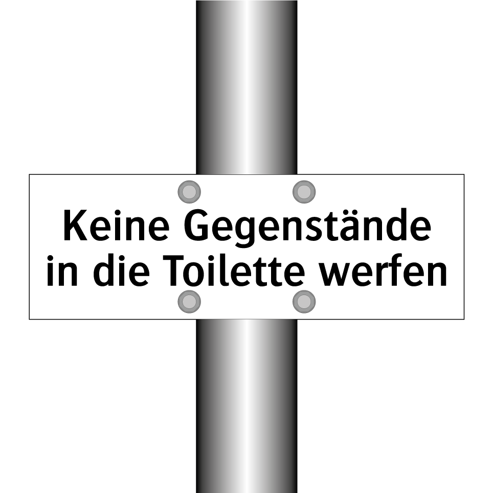 Verbotsschild mit dem Text Keine Gegenstände in die Toilette werfen