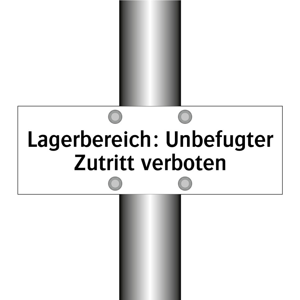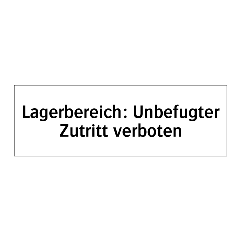 Verbotsschild mit dem Text Lagerbereich: Unbefugter Zutritt verboten