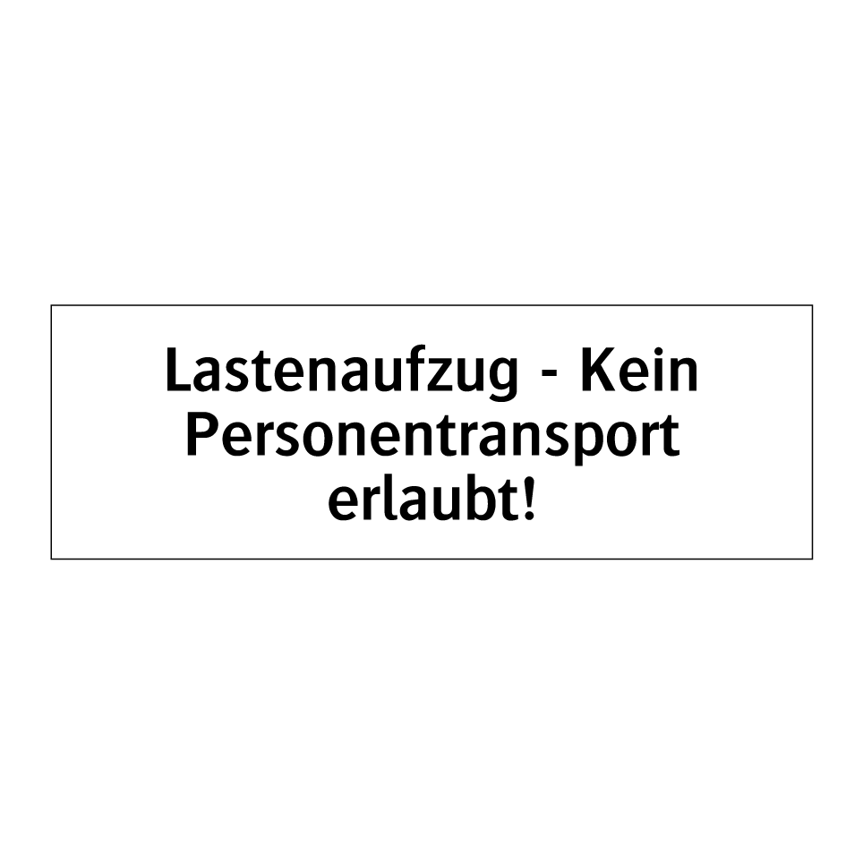 Verbotsschild mit dem Text Lastenaufzug - Kein Personentransport erlaubt!