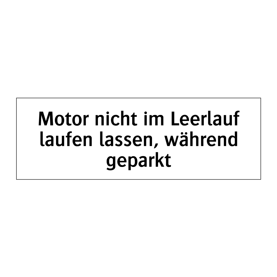 Verbotsschild mit dem Text Motor nicht im Leerlauf laufen lassen, während geparkt
