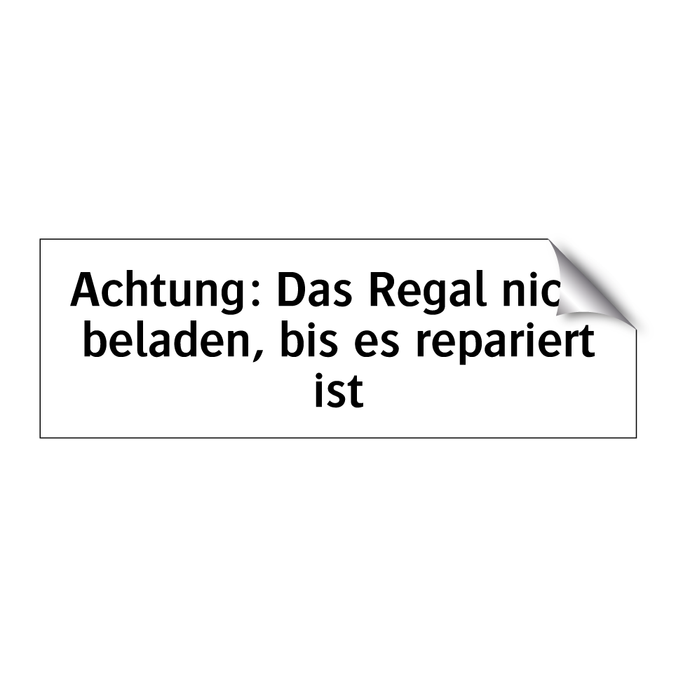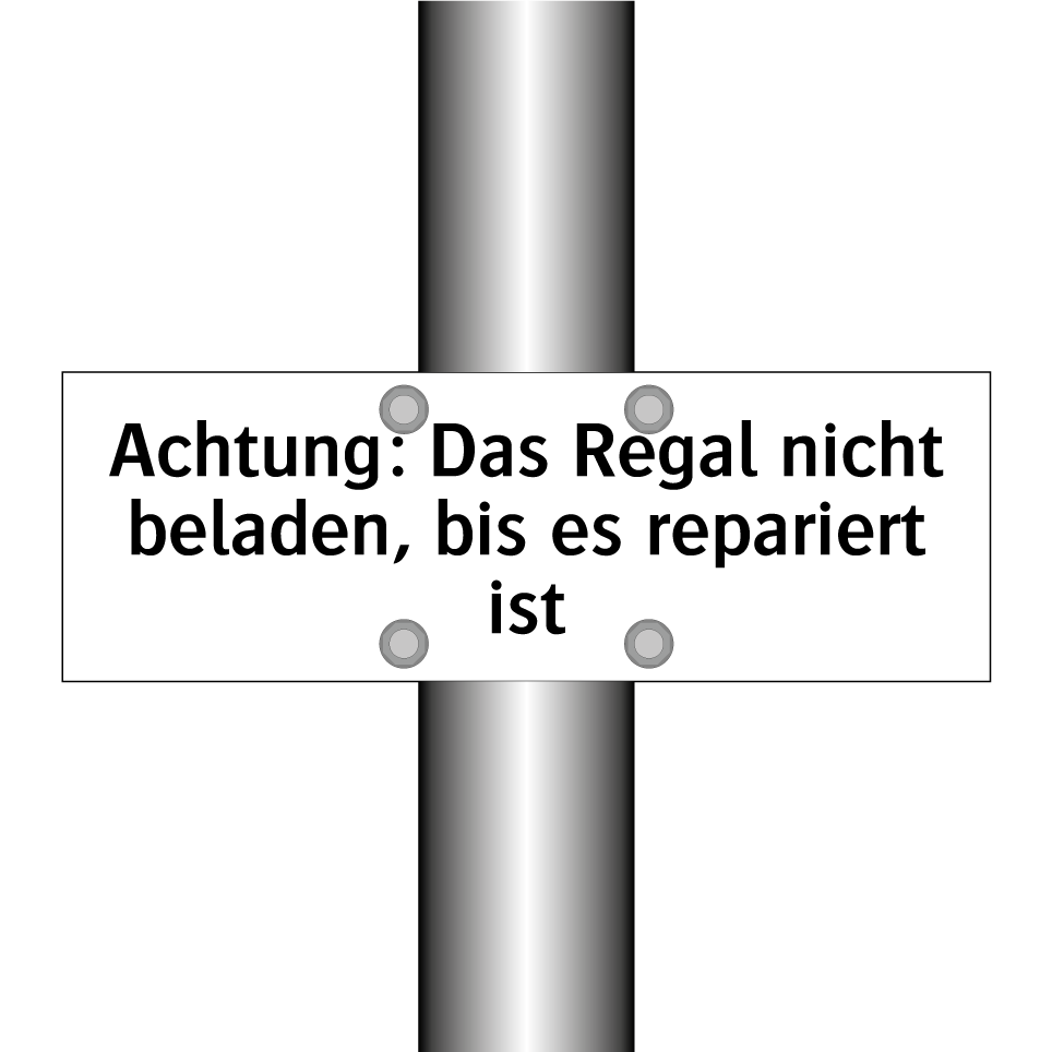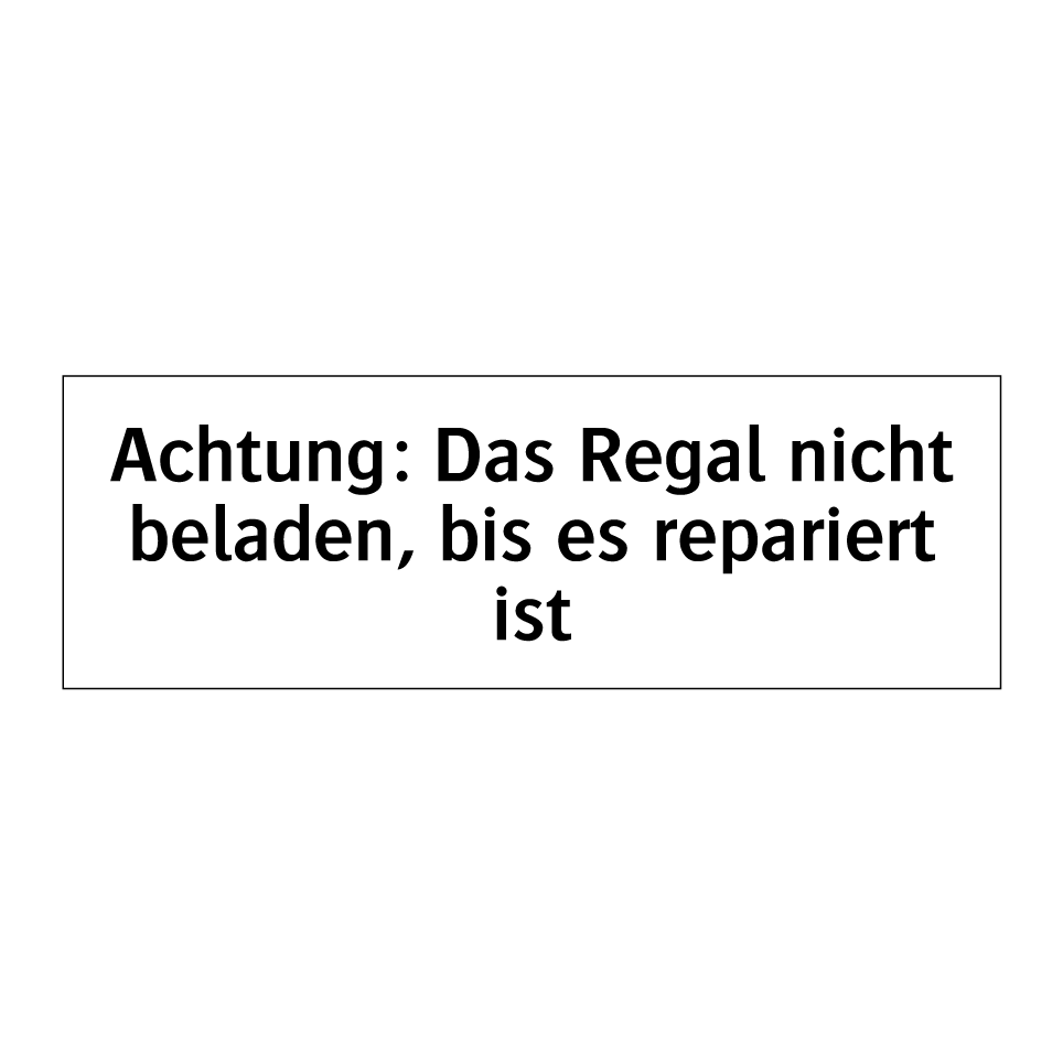 Verbotsschild mit dem Text Achtung: Das Regal nicht beladen, bis es repariert ist