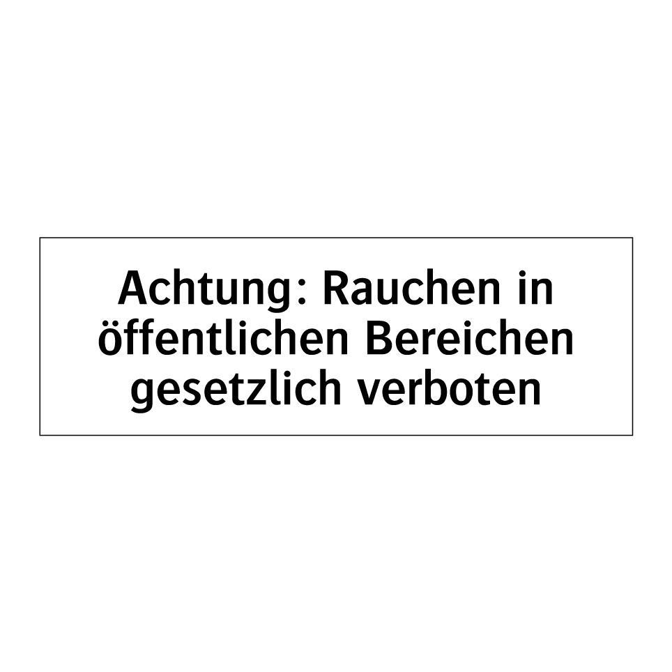 Verbotsschild mit dem Text Achtung: Rauchen in öffentlichen Bereichen gesetzlich verboten