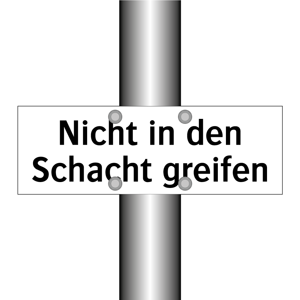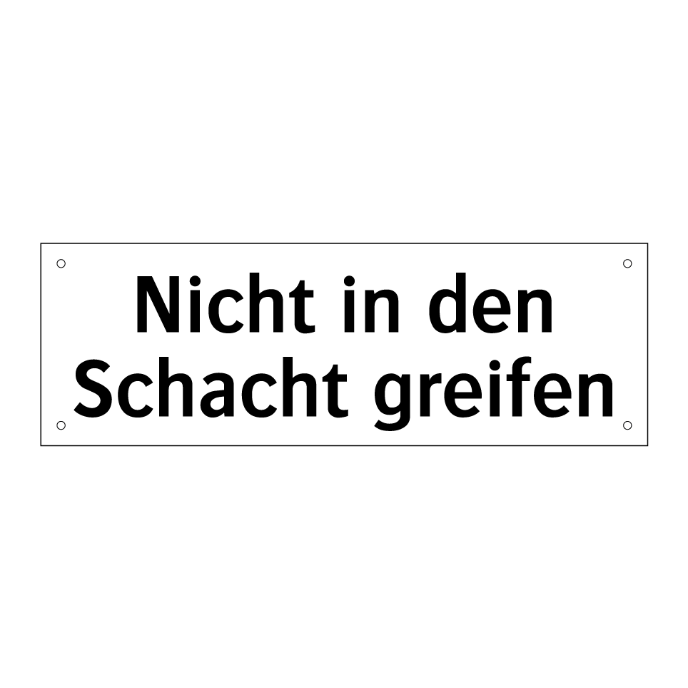 Verbotsschild mit dem Text Nicht in den Schacht greifen