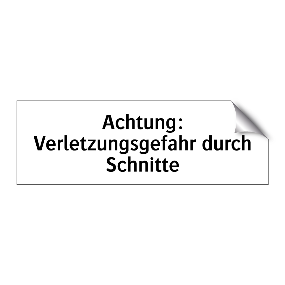 Verbotsschild mit dem Text Achtung: Verletzungsgefahr durch Schnitte