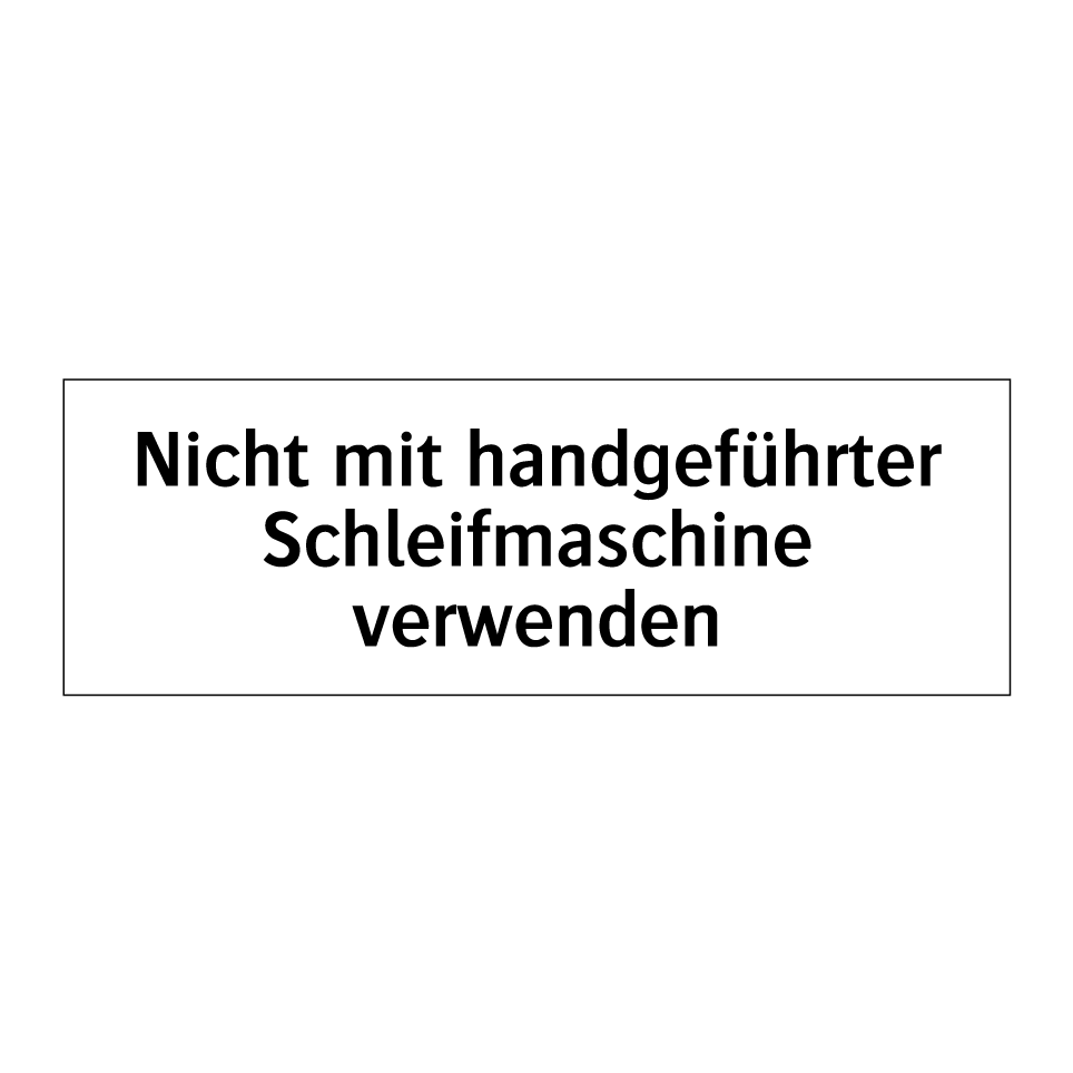 Verbotsschild mit dem Text Nicht mit handgeführter Schleifmaschine verwenden