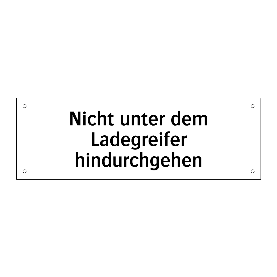 Verbotsschild mit dem Text Nicht unter dem Ladegreifer hindurchgehen