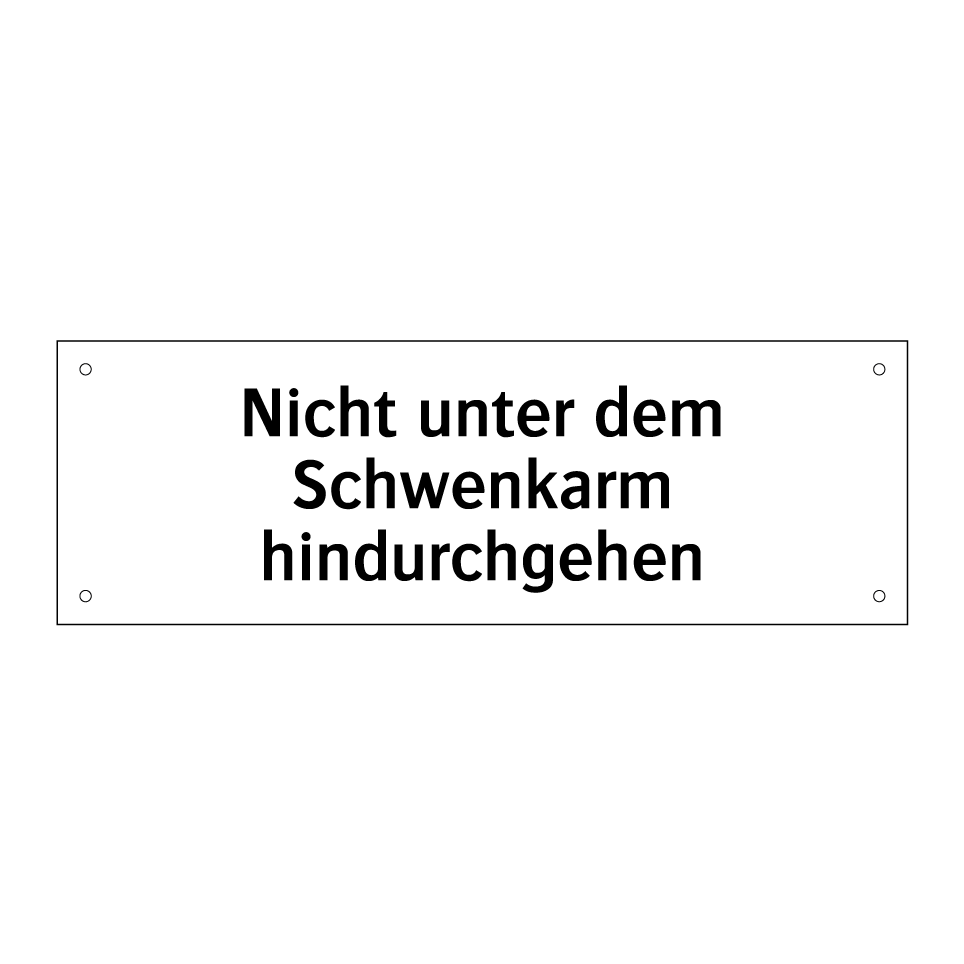 Verbotsschild mit dem Text Nicht unter dem Schwenkarm hindurchgehen