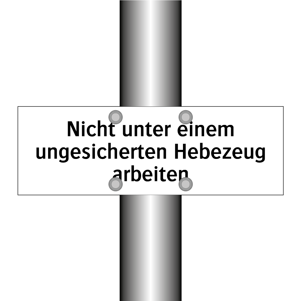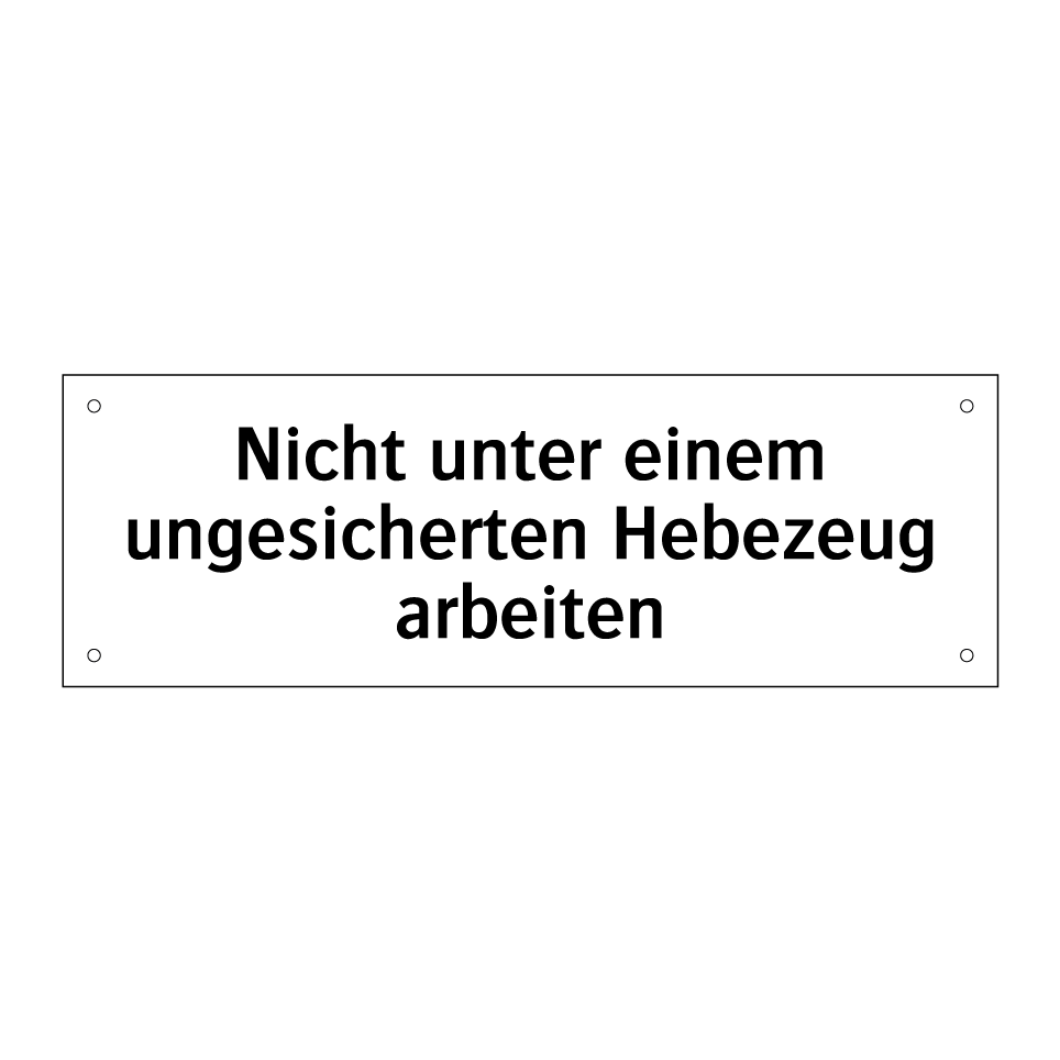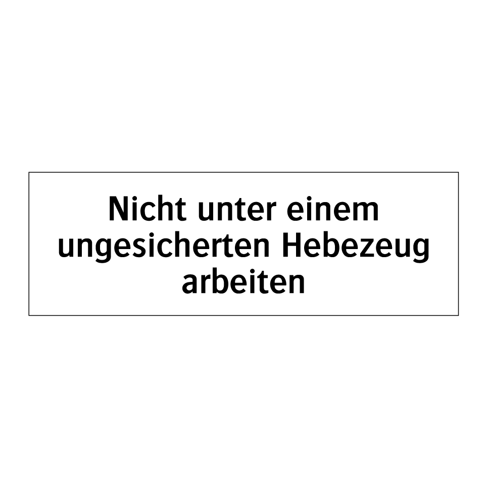 Verbotsschild mit dem Text Nicht unter einem ungesicherten Hebezeug arbeiten