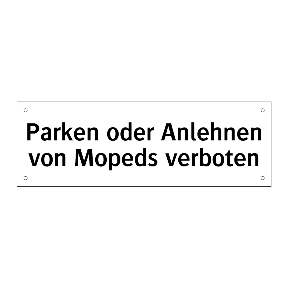 Verbotsschild mit dem Text Parken oder Anlehnen von Mopeds verboten