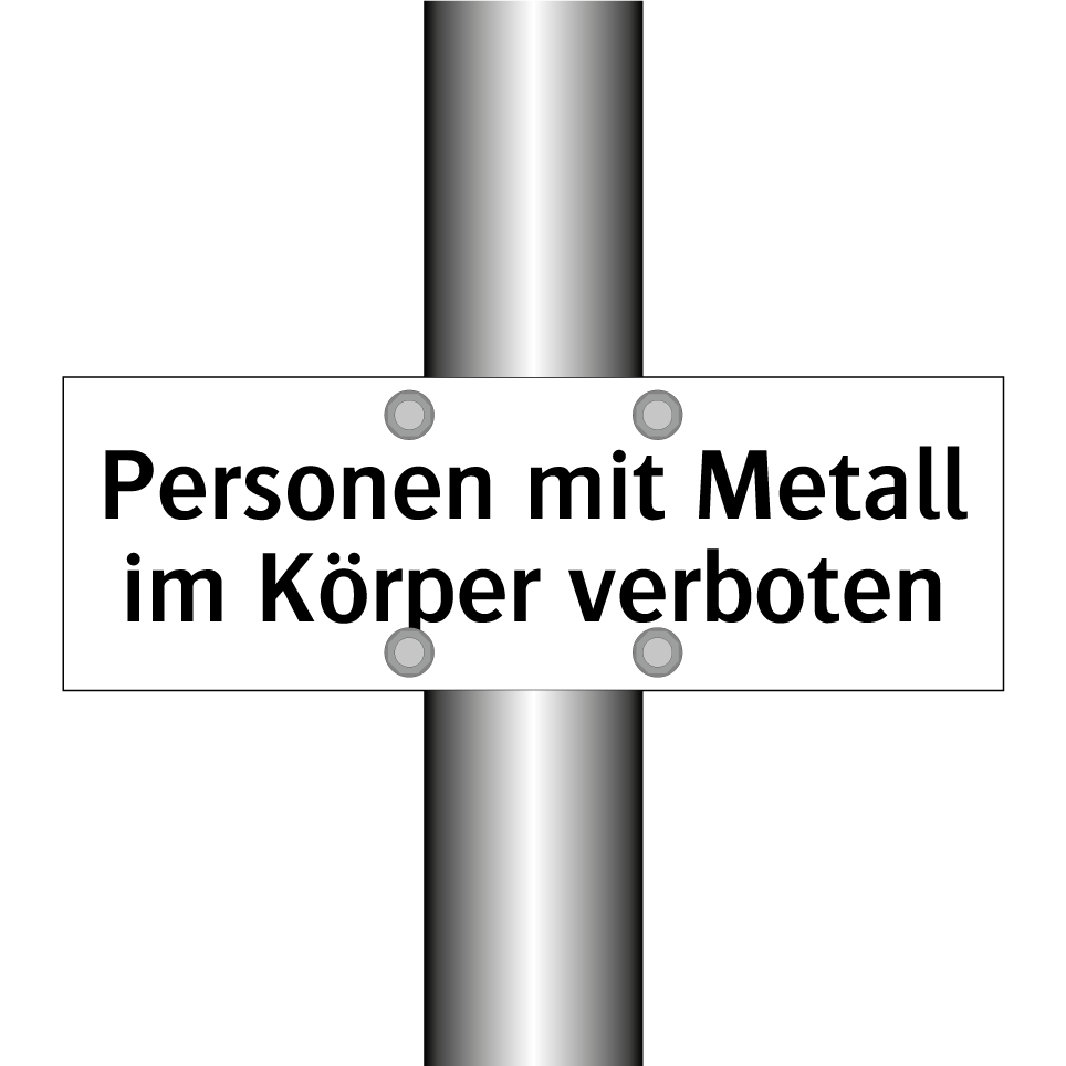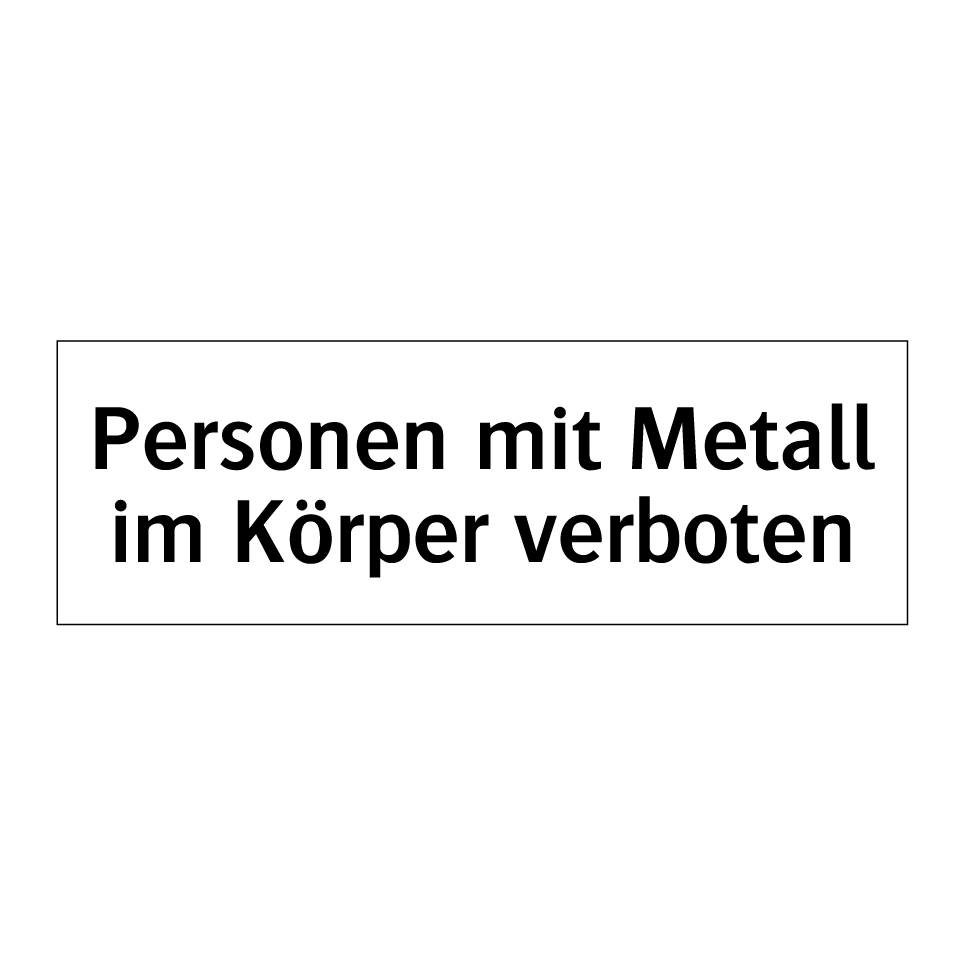 Verbotsschild mit dem Text Personen mit Metall im Körper verboten